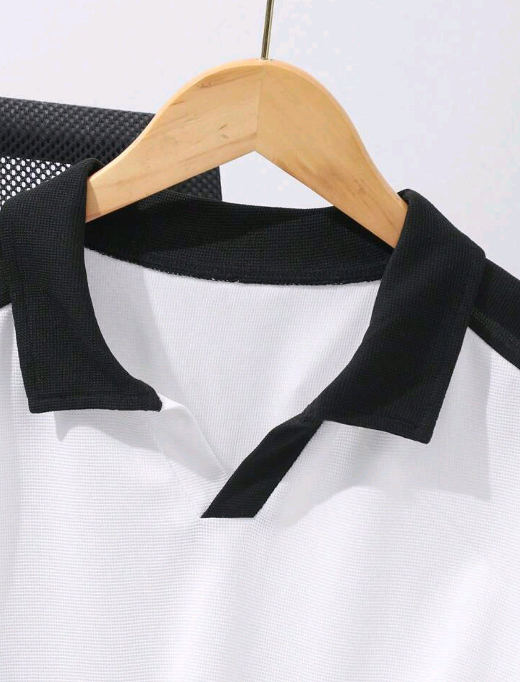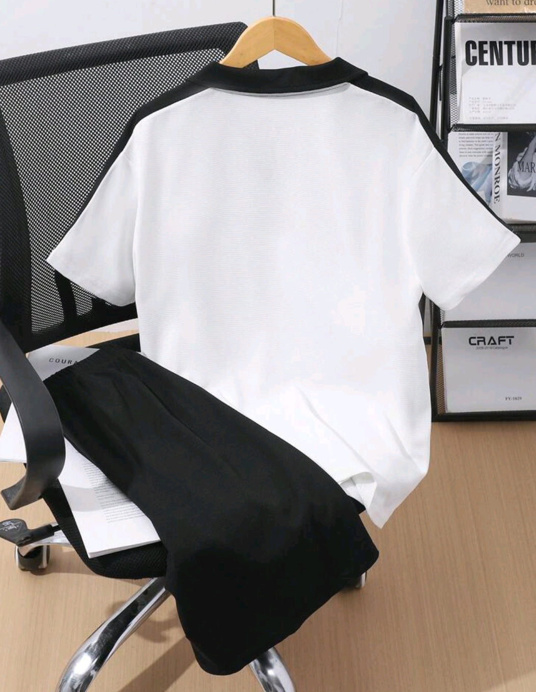 2pcs/Set Teens' Casual Color Blocking Polo Shirt And Shorts Set 161415