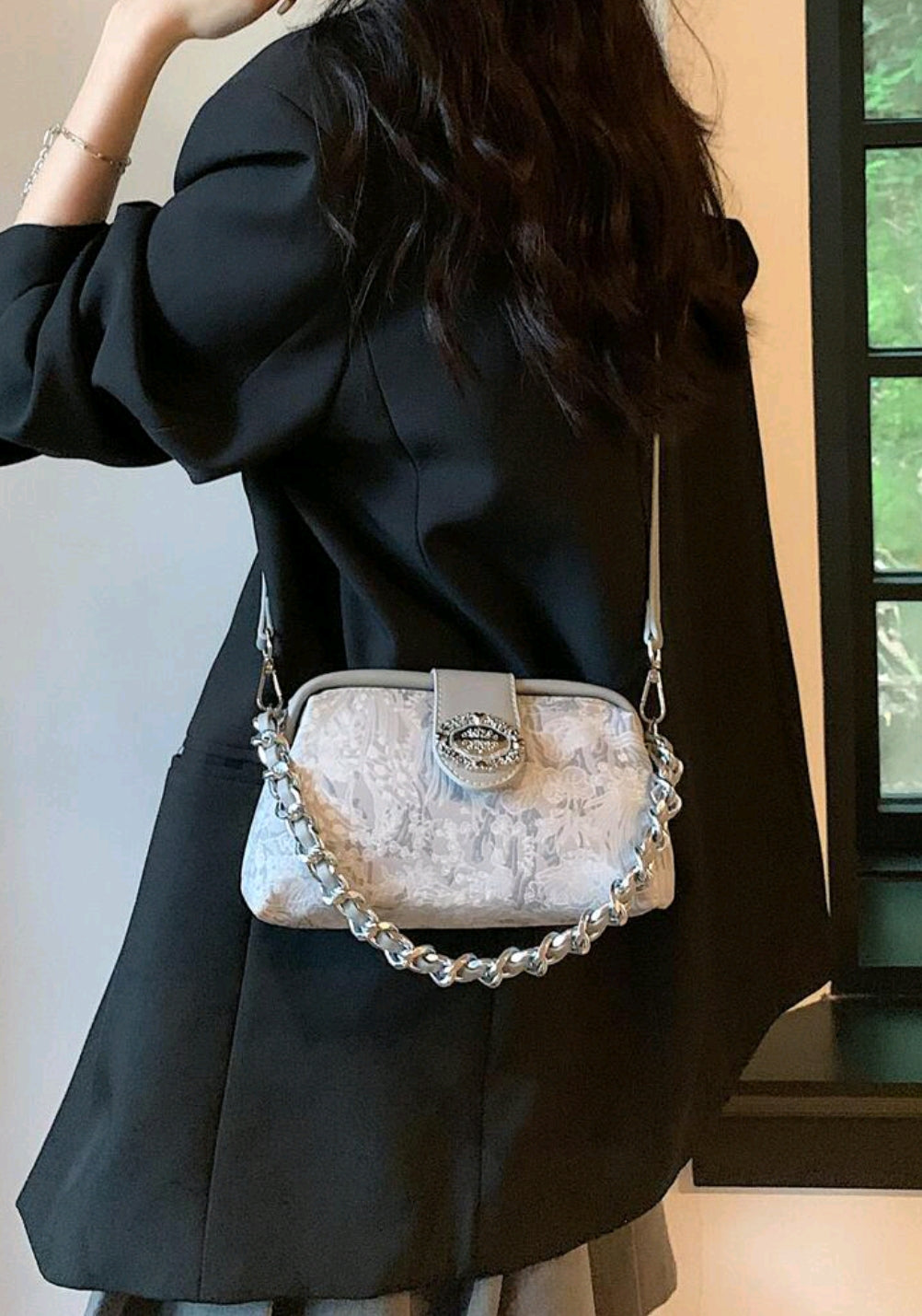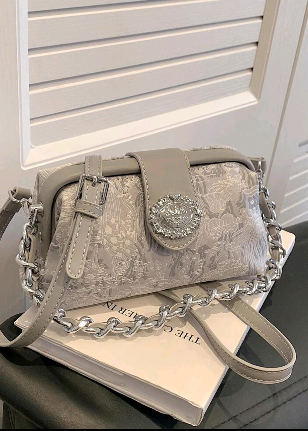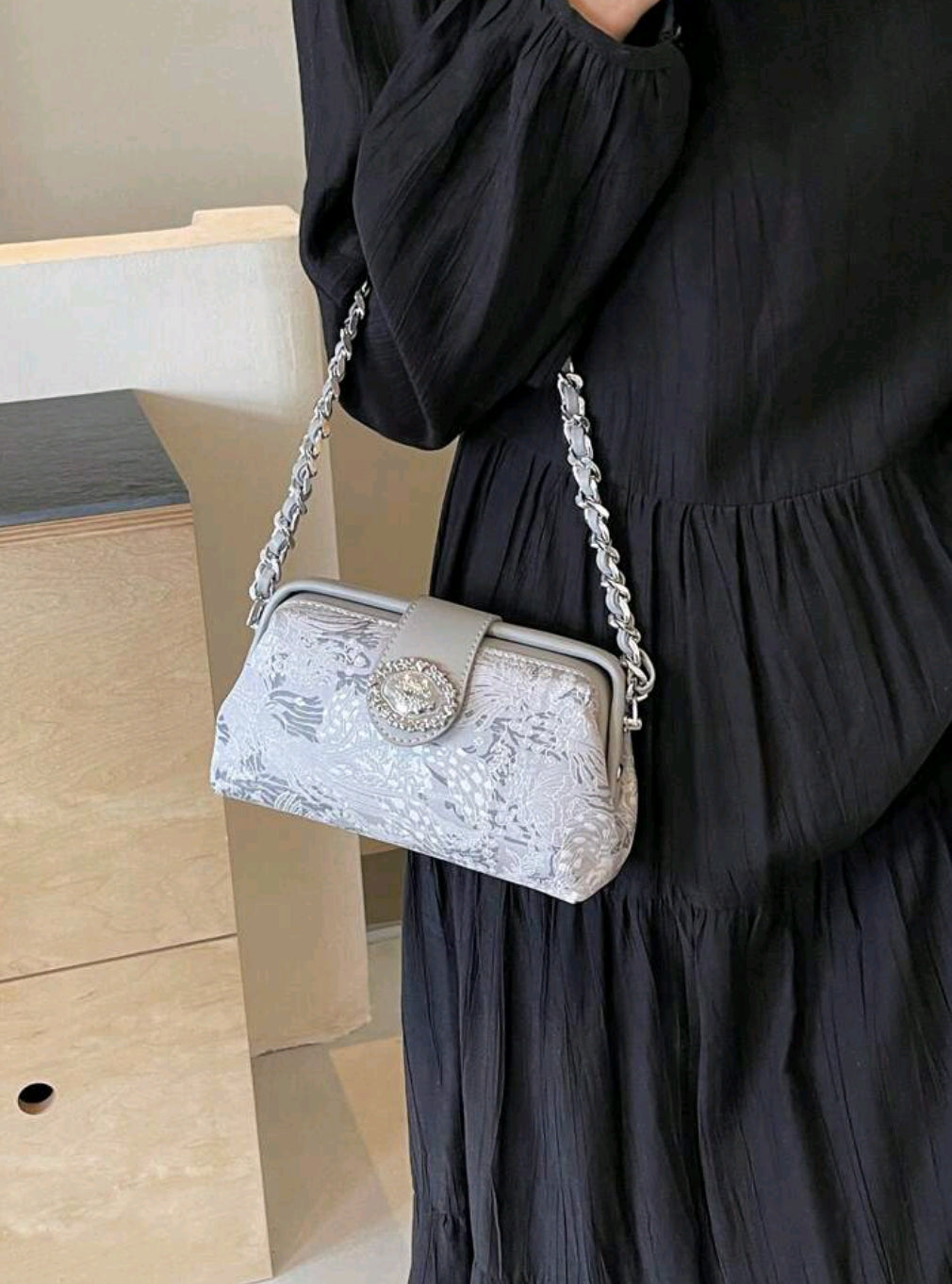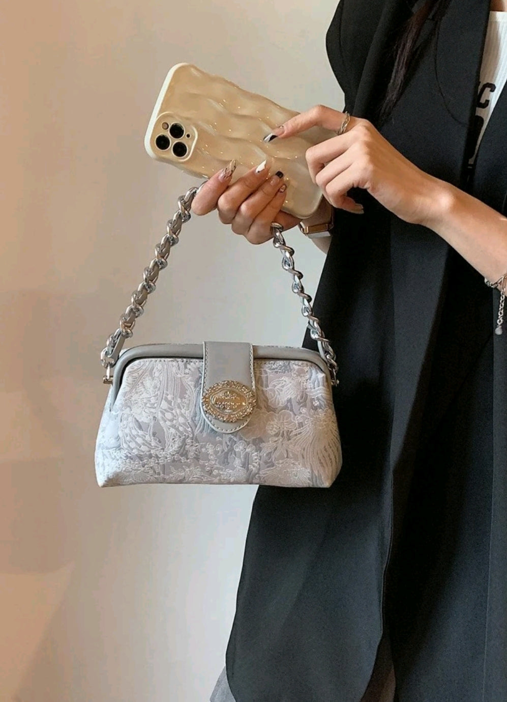 Mini Fashionable Elegant Solid Color Clutch With Metal Chain Handle For Women
