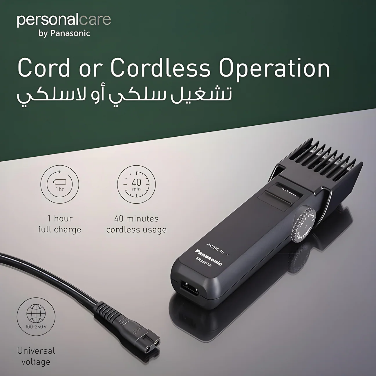 Panasonic Beard and Hair Trimmer, ER 2051K, Rechargeable Trimmer, Stainless Steel Blade, Adjustable Length Settings, Cordless Trimmer, Men's Grooming.